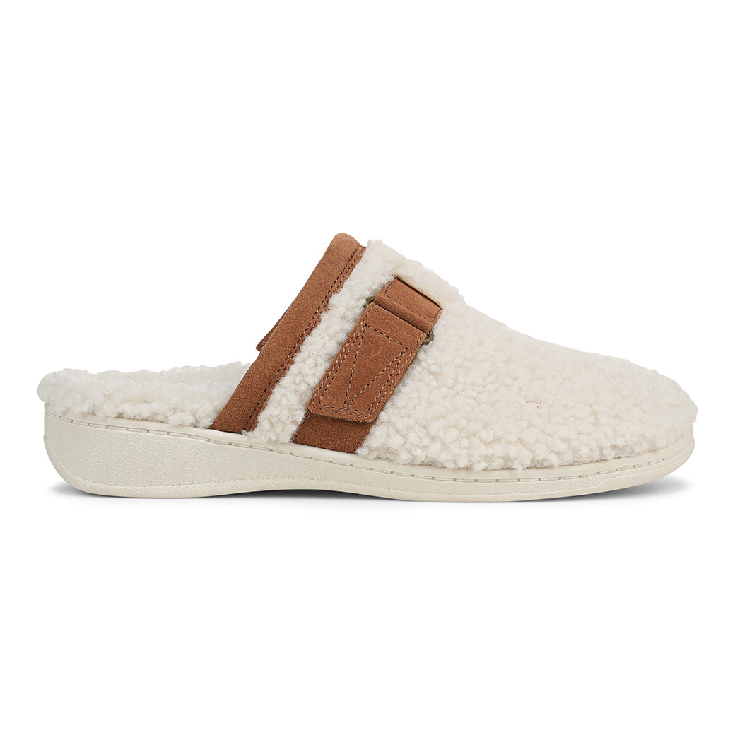 The Izzy slipper offers easy slip-on comfort with a hook and loop closure for a customizable fit. Perfect for cozy, adjustable support all day long.