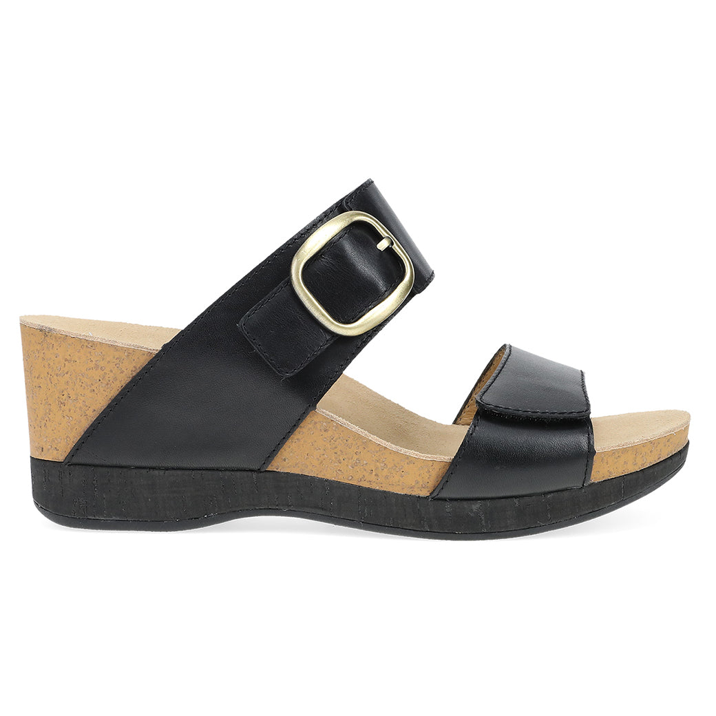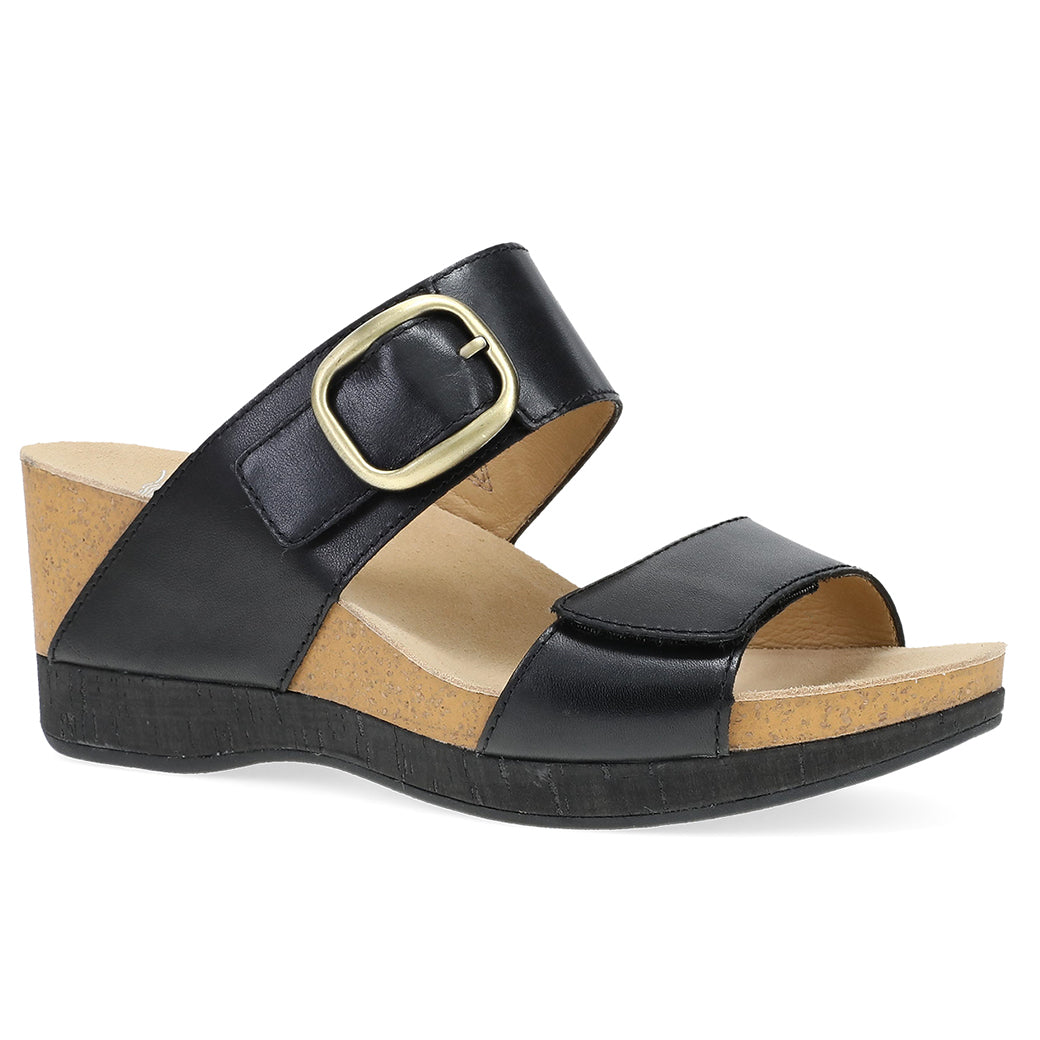 The Shannon wedge from Dansko features two hook and loop straps for a custom fit, with a faux buckle ornamentation for interest. This wedge features high quality leathers that are treated with a 3M Scotchguard for stain resistance.